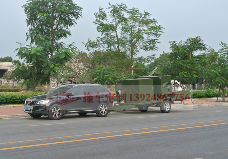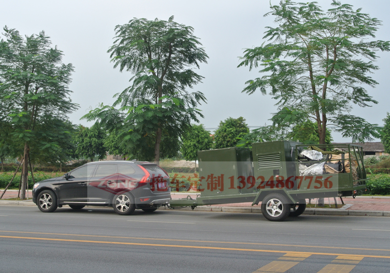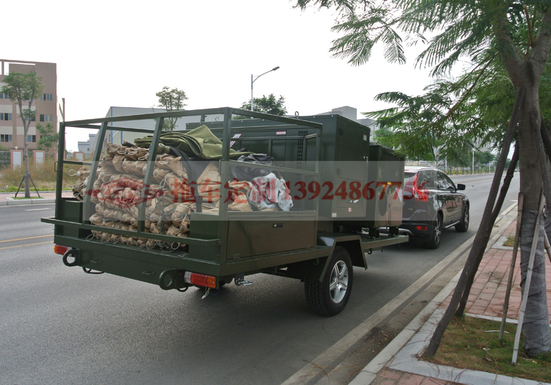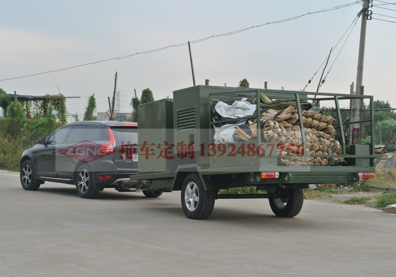 本拖挂车为客户特定要求定制,拖车可装载发电机、冷暖风机、大型帐篷,可为越野露营、野外作战提供舒适的场所。